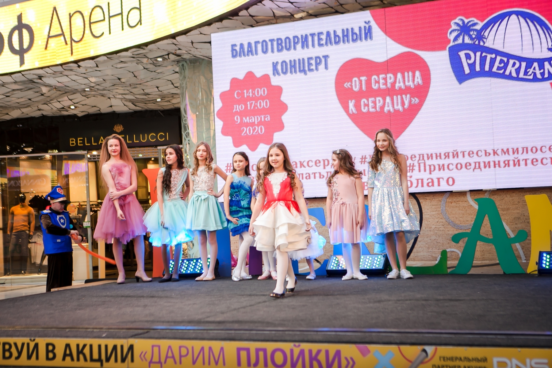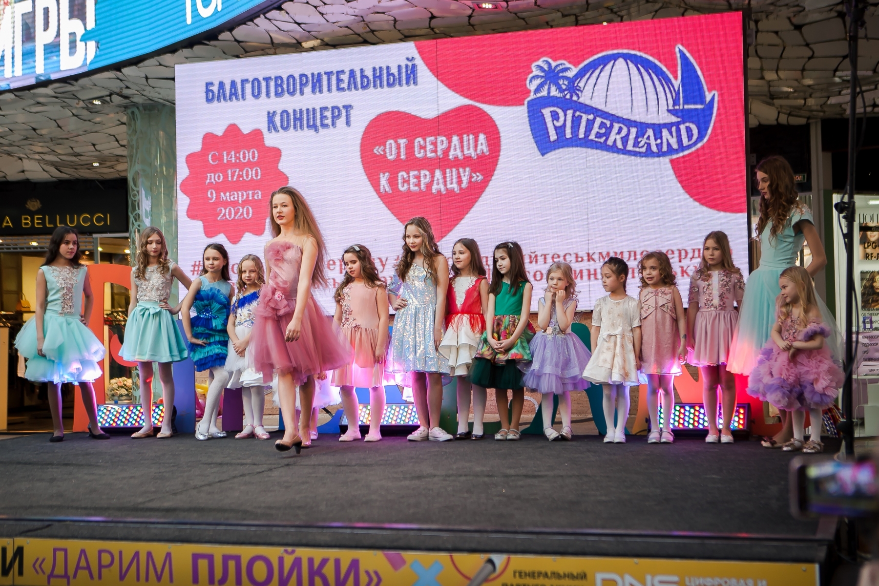 В рамках благотворительного концерта "От сердца к сердцу", прошедшего в ТРК «Питерлэнд» прошли дизайнерские показы российских дизайнеров, одежду которых представляли модели Dolce Vita.